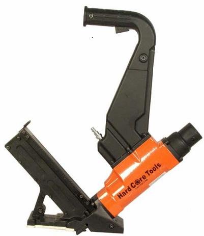 Our high-speed hardwood flooring, 2 in 1 pneumatic (powered by air compressor) cleat nailer / stapler is designed to install tongue and groove flooring using 1" to 2" length L-shaped cleat nails or staples on flooring thickness 1/2", 5/8", 3/4", or 25/32".